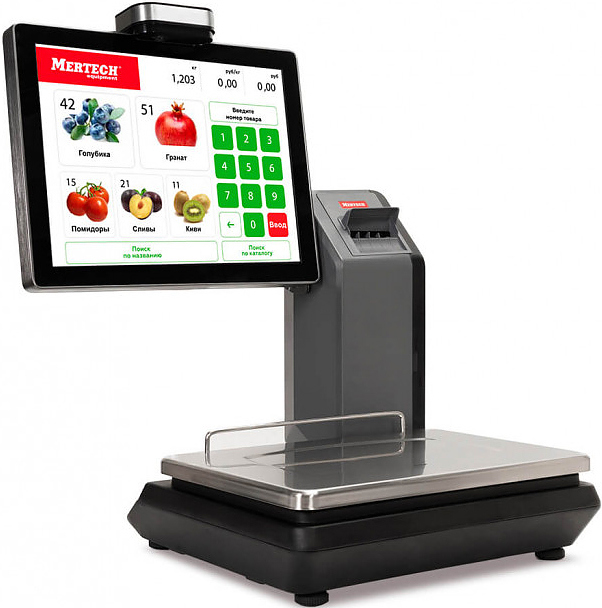 Настольные весы Mertech M-ER 725 PM-15.2 VISION-AI (15"/USB/Ethernet/Wi-Fi) используются в зонах самообслуживания магазинов и супермаркетов для самостоятельного взвешивания товаров клиентами и печати этикеток. Весы оснащены термопринтером в отдельном вертикальном корпусе, интуитивно понятным меню и сенсорным экраном с большими кнопками. Встроенный модуль искусственного интеллекта распознает товары, размещенные на платформе. Материал корпуса - металл с порошковой окраской, материал платформы - нержавеющая сталь.