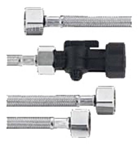 входн. и выходн. шланги G3/4 - G3/8 + запирающий клапан G3/4 - G1, DN8, 2 метра, нерж. металл, супергибкость